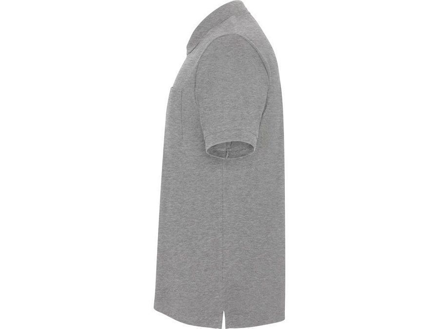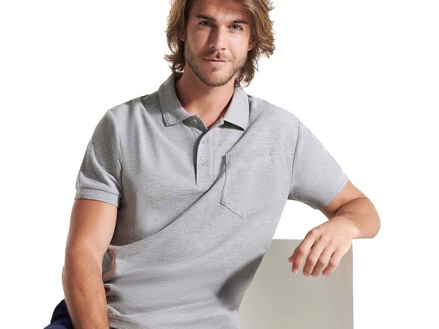 Рубашка поло с коротким рукавом и накладным карманом. Воротник и манжеты из риба 1х1 со структурными полосками по краю. Планка застегивается на три пуговицы. По горловине укрепляющая тесьма.