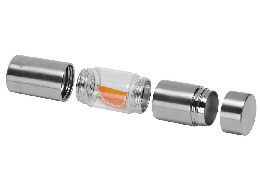 Бутылка для воды «FLAVOUR U SEE» от Asobu с прозрачным окошком посередине не только поможет вам приготовить питательную и вкусную фруктовую или ягодную воду, но и сделает ваш день немного ярче, позволив насладиться видом фруктов, а также дополнит ваш образ в качестве аксессуара. С обеих сторон прозрачной емкости, куда вы можете поместить дольки, размещены ситечки с крупными ячейками, которые не препятствуют свободной циркуляции воды и одновременно не пропускают плоды в основное отделение, где они могли бы мешать питью.