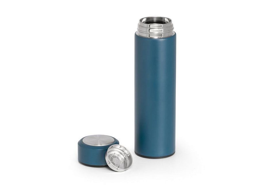 Термос из нержавеющей стали с двойным корпусом и ситечком для заваривания чая. Емкость до 470 мл. Поставляется в подарочной упаковке. Вид нанесения, рекомендуемый поставщиком: гравировка, трафаретная печать