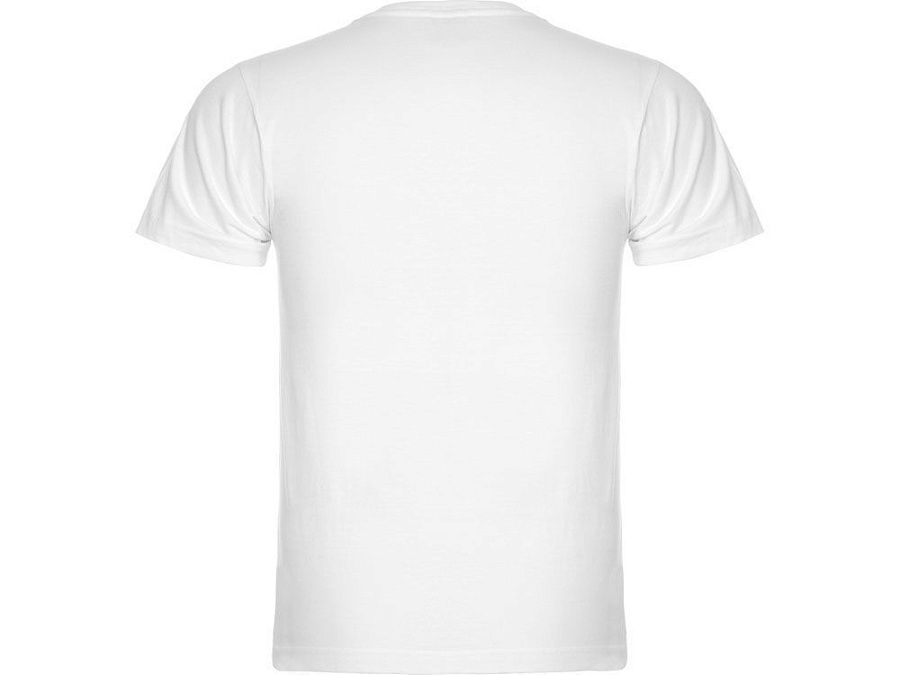 Мужская футболка без боковых швов с коротким рукавом и V-образным вырезом горловины, отделанном рибом 1х1. Горловина и плечевые швы дополнительно укреплены тесьмой.
