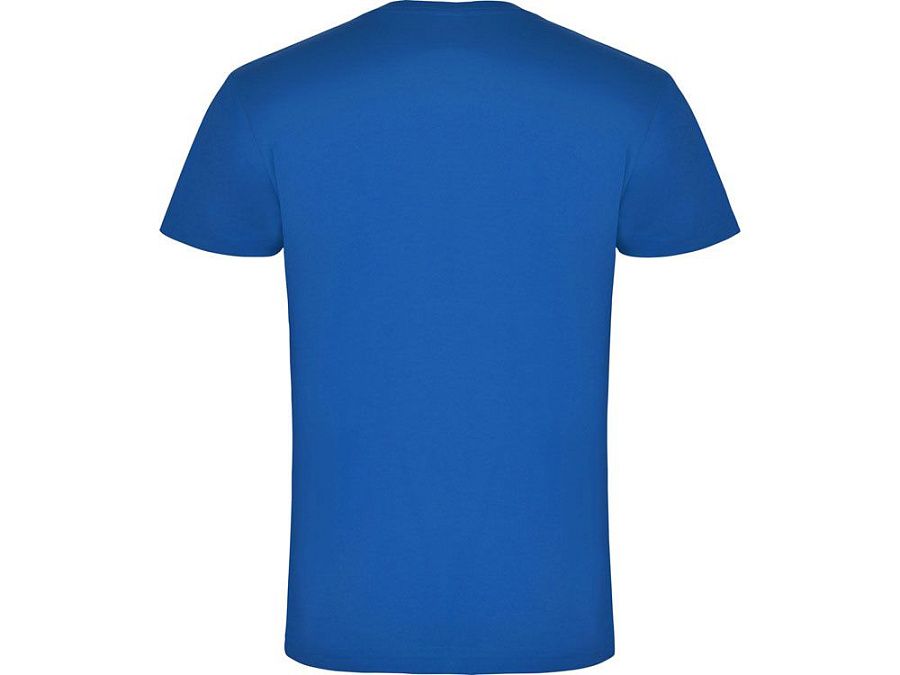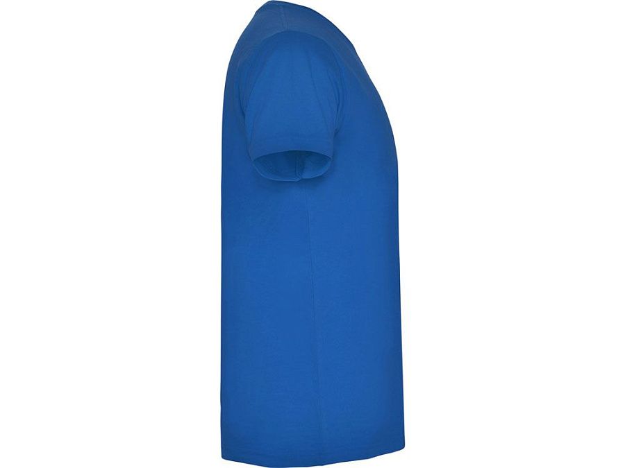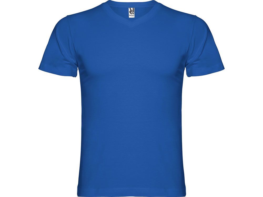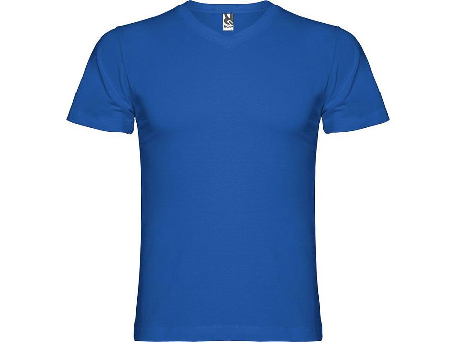 Мужская футболка без боковых швов с коротким рукавом и V-образным вырезом горловины, отделанном рибом 1х1. Горловина и плечевые швы дополнительно укреплены тесьмой.