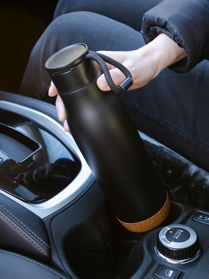Контраст текстурной пробки на дне и матового покрытия делают термобутылку Steady не только практичным, но и стильным подарком.