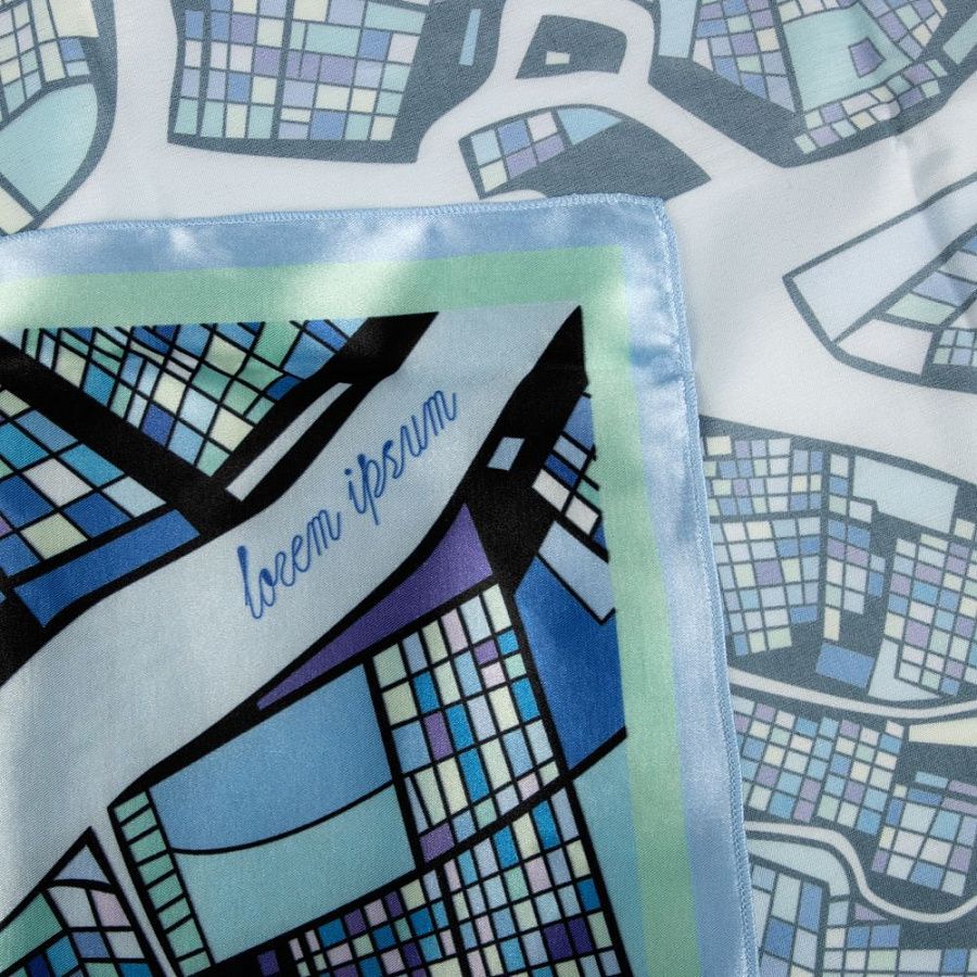 Платок из шармуса, подходящего для сублимационной печати. Края обработаны оверлоком.