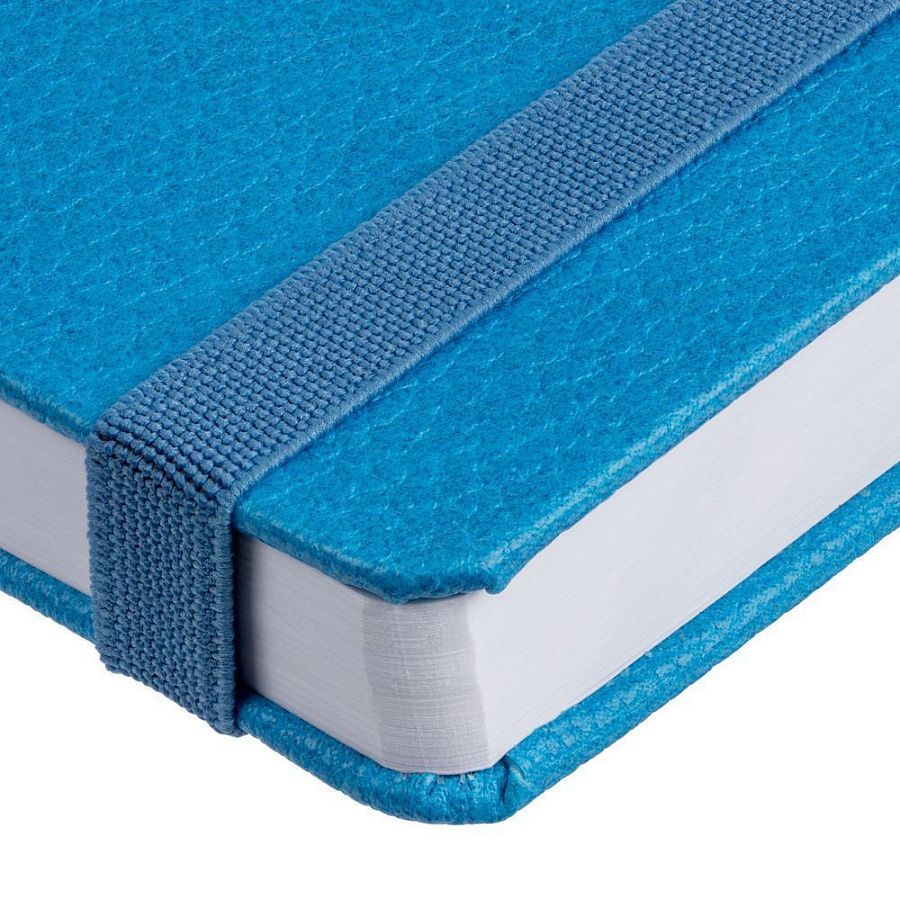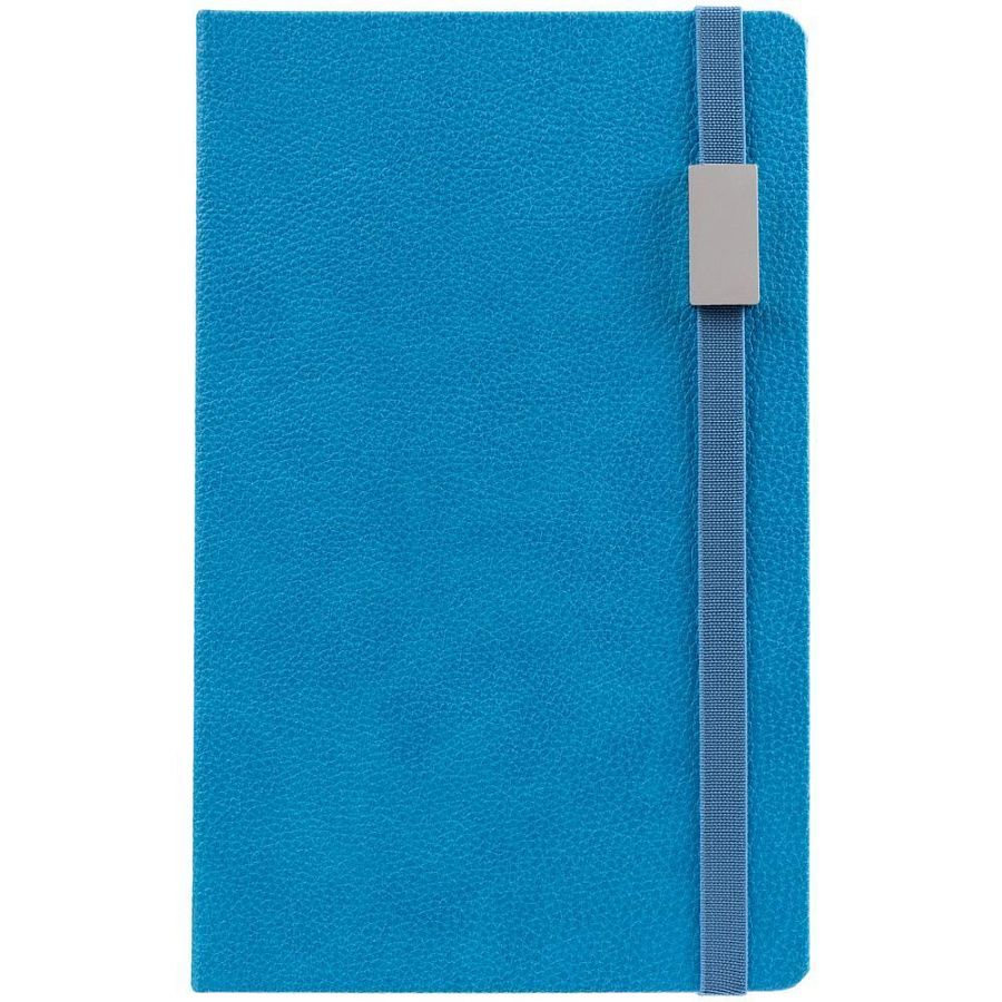 Зауженный ежедневник с прямоугольным металлическим шильдом на резинке.