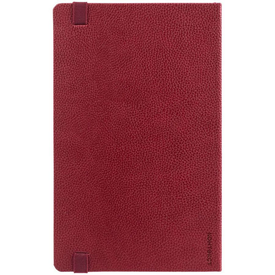Ежедневник с твердой обложкой, выполнен из материала LaFite, красный РР, дополнен резинкой с металлическим круглым шильдом и ляссе в цвет обложки.