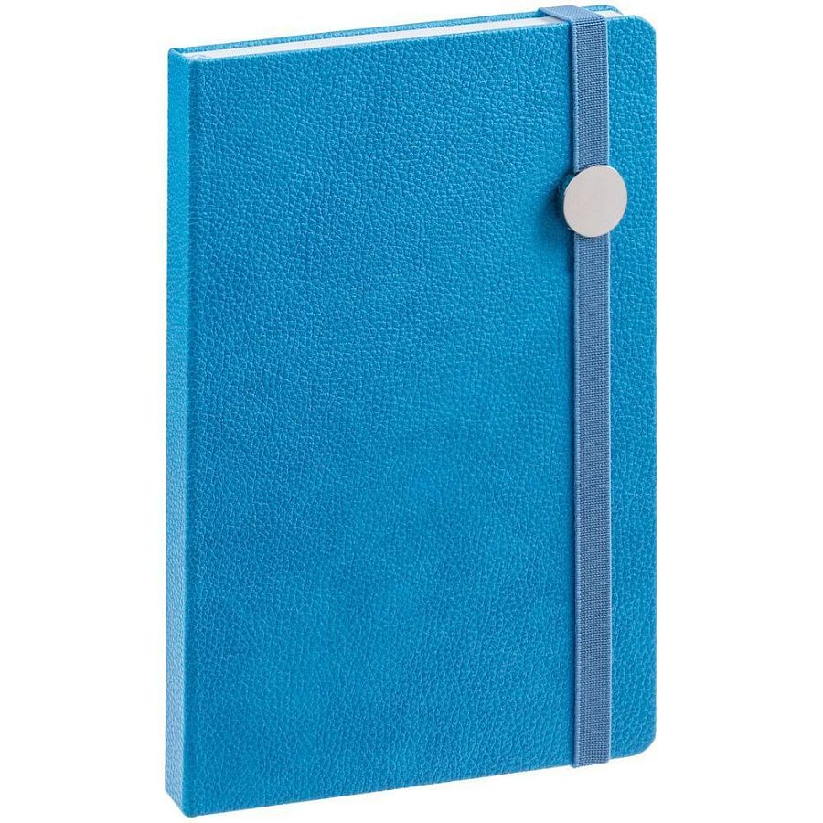 Зауженный ежедневник с круглым металлическим шильдом на резинке.