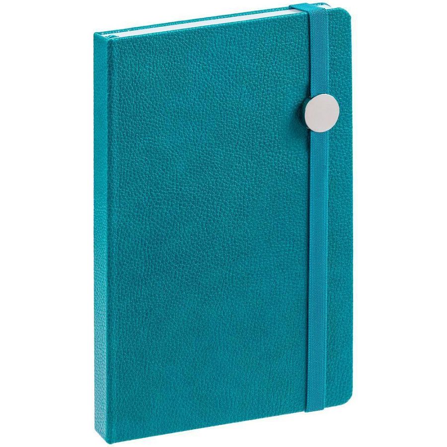 Ежедневник с твердой обложкой, выполнен из материала LaFite, цвет морской волны II, дополнен резинкой с металлическим круглым шильдом и ляссе в цвет обложки.