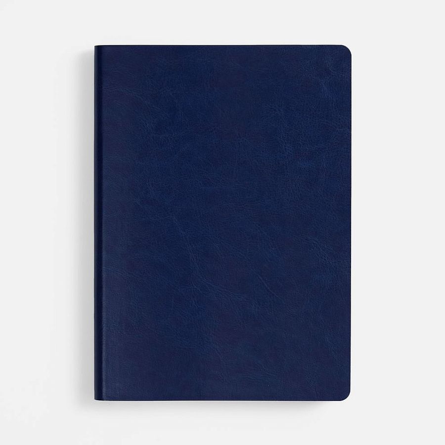 Ежедневник с гибкой обложкой, выполнен из материала Nebraska, синий HH, дополнен ляссе темно-синего цвета.