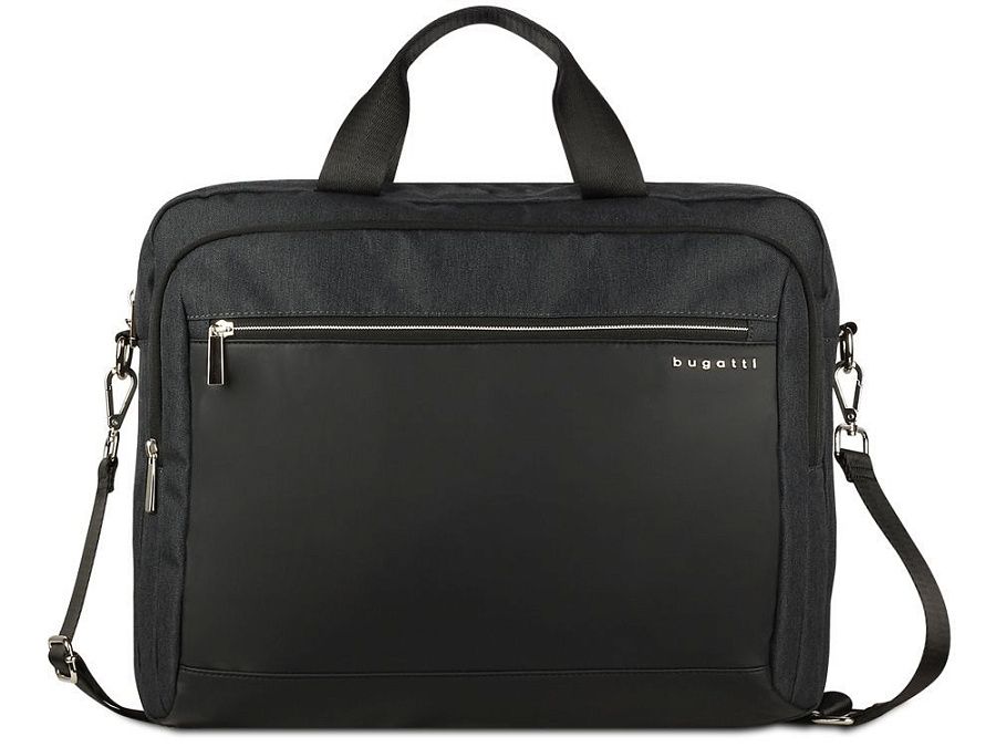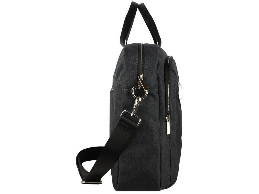 Внешняя организация: переднее отделение на молнии с карманом-органайзером (открытый карман, 3 слота для карточек, 2 держателя для пишущих принадлежностей), передний карман на молнии, задний карман на молнии с ремнём для соединения с телескопической ручкой чемодана, ручки высотой 9 см, съёмный регулируемый плечевой ремень (до 150 см)