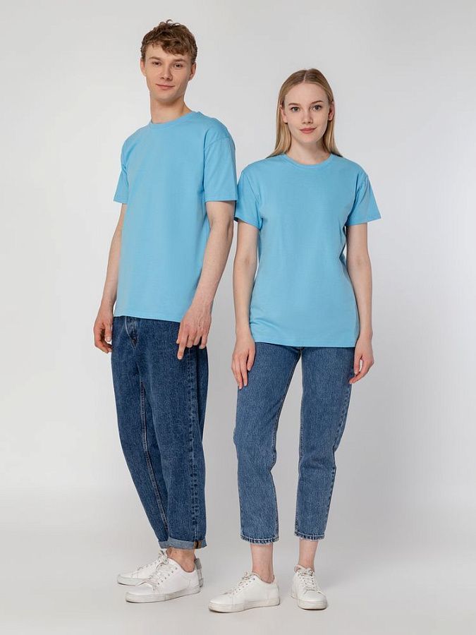 Базовая футболка унисекс прямого силуэта без боковых швов (размеры XS–4XL) или с боковыми швами (размеры 5XL–6XL).