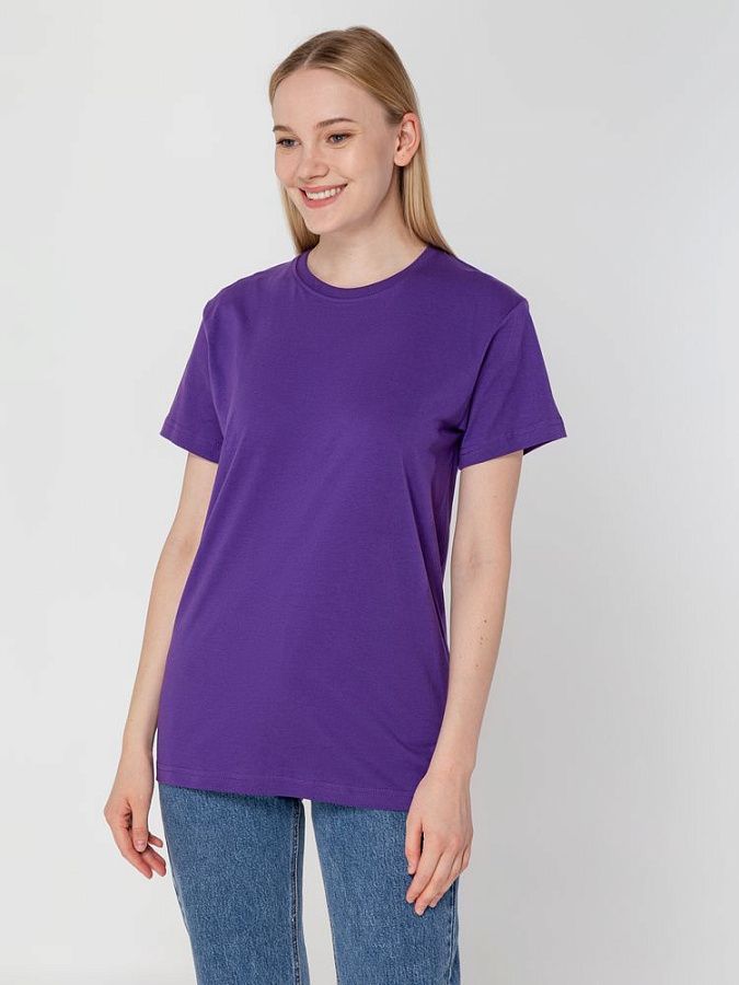 Базовая футболка унисекс прямого силуэта без боковых швов (размеры XS–4XL) или с боковыми швами (размеры 5XL–6XL).