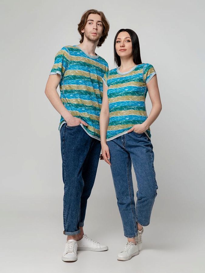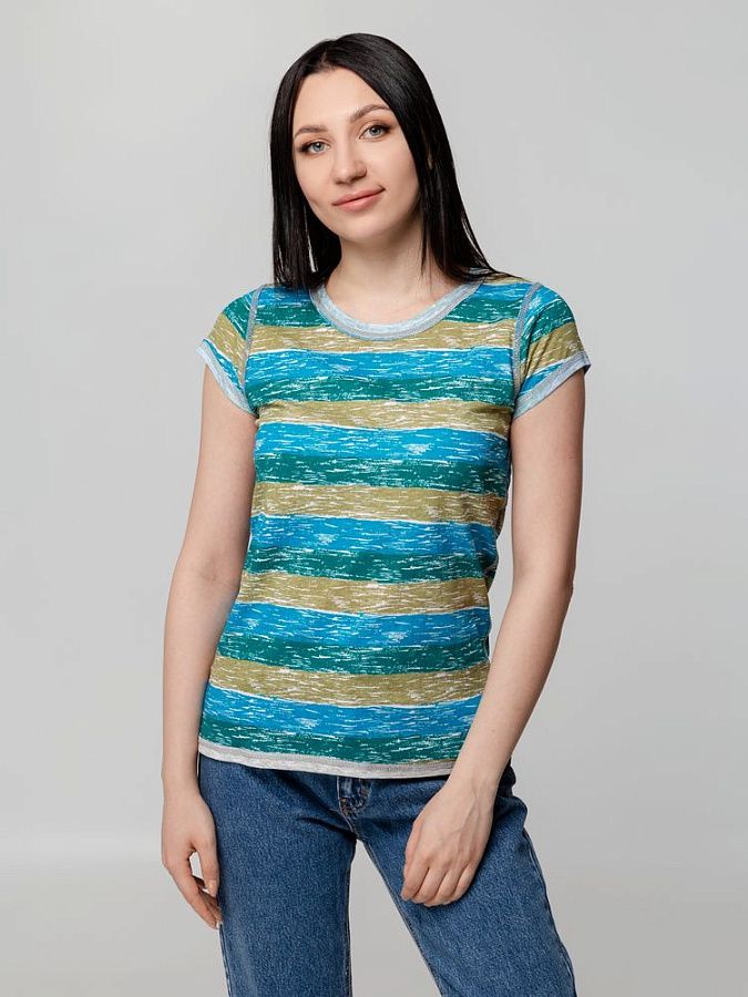 Двусторонняя женская футболка с круглым вырезом и плоскими швами.