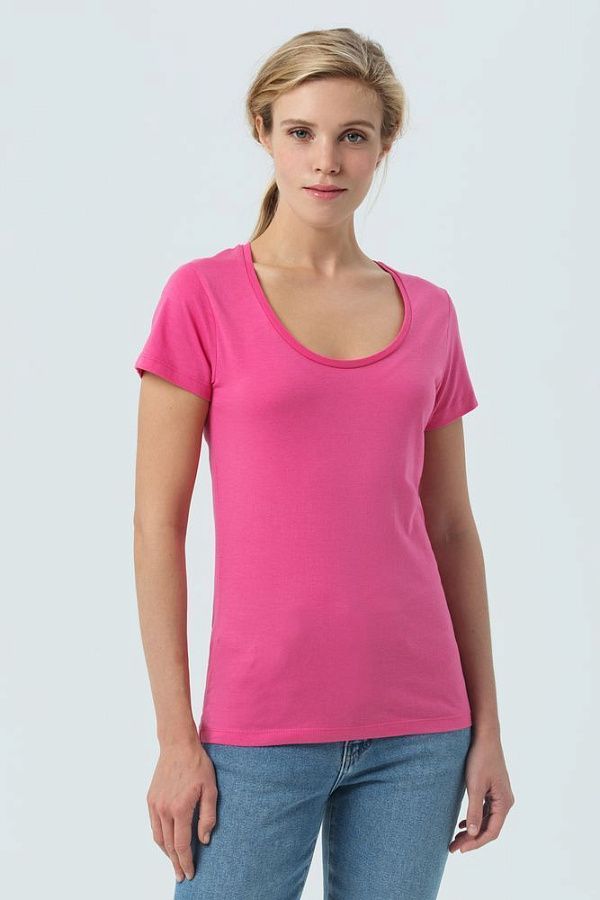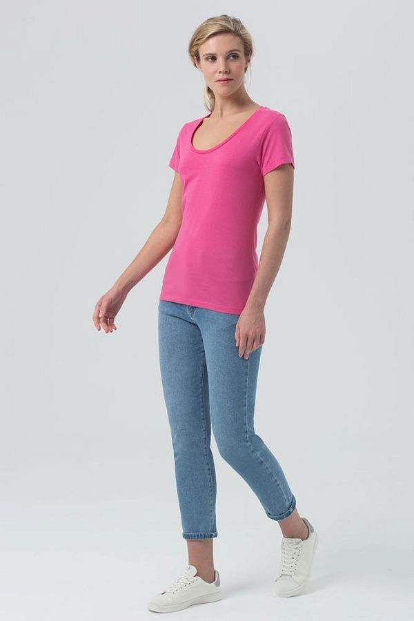 Женственная футболка с глубоким круглым вырезом.