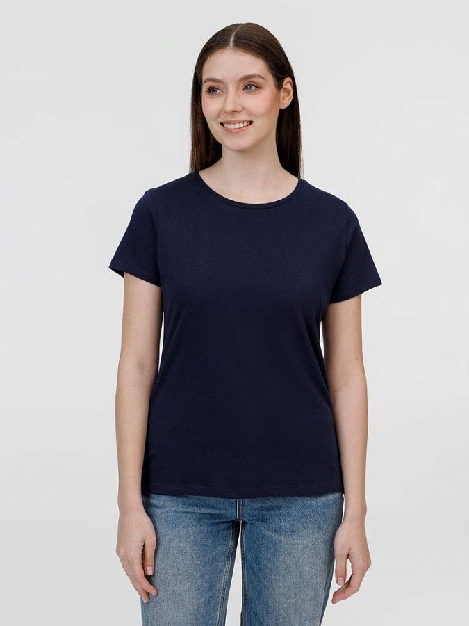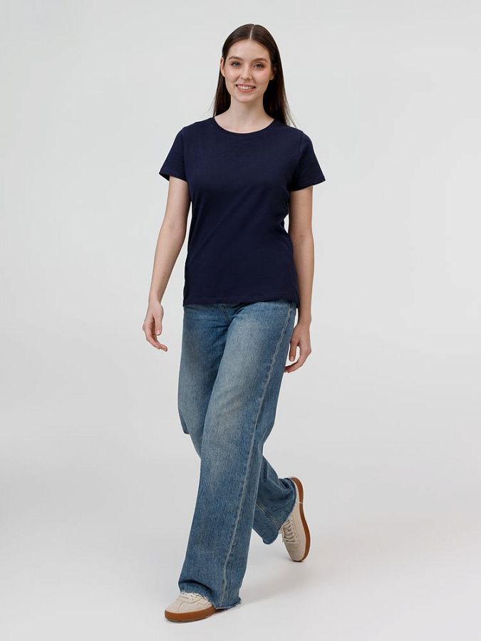 Кроеная женская футболка приталенного силуэта с круглым воротом.