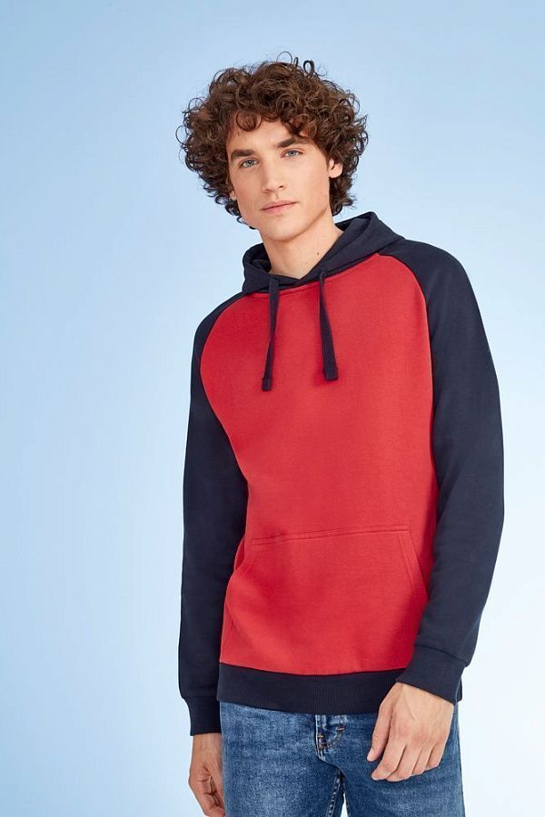 Двухцветная утепленная толстовка унисекс с рукавами реглан и карманом-кенгуру.