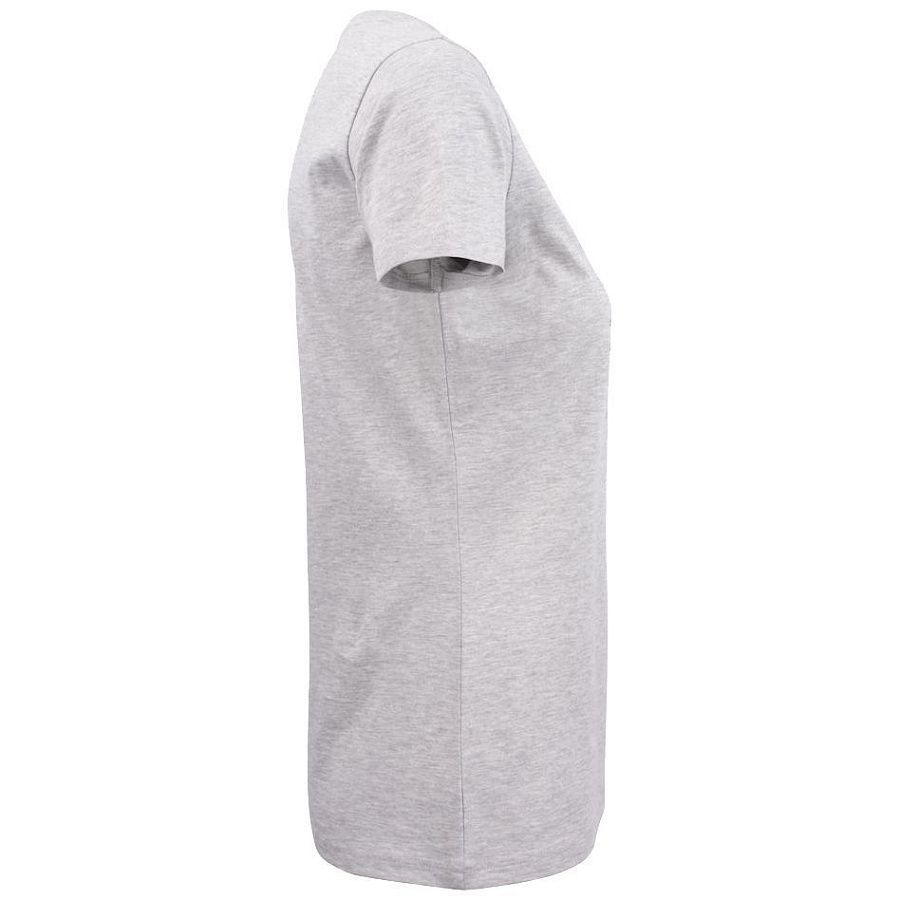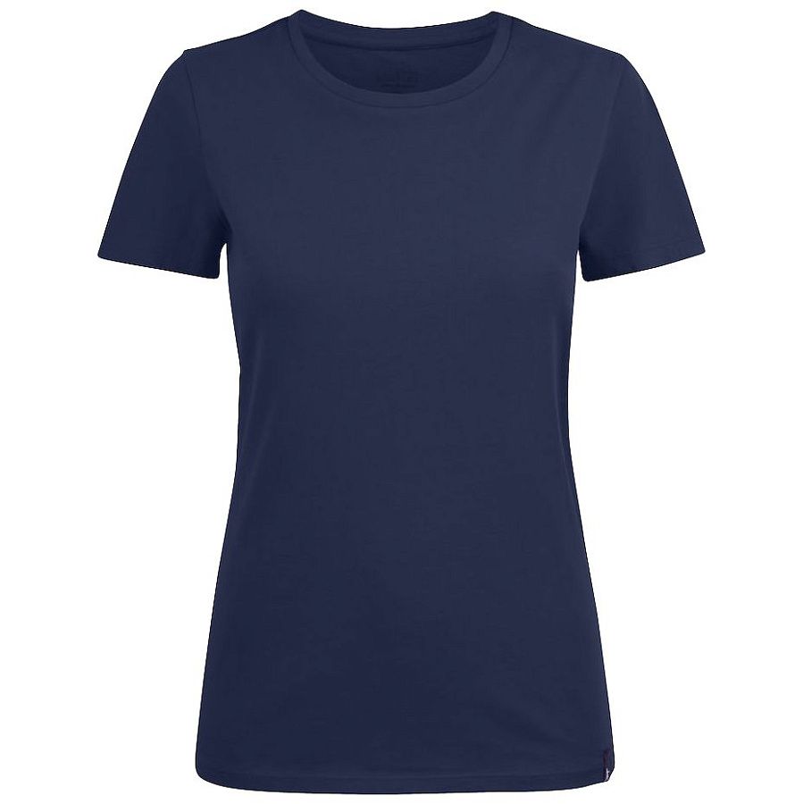 Женская футболка с круглым вырезом. Двухслойная резинка предохраняет воротник от деформации после стирки.