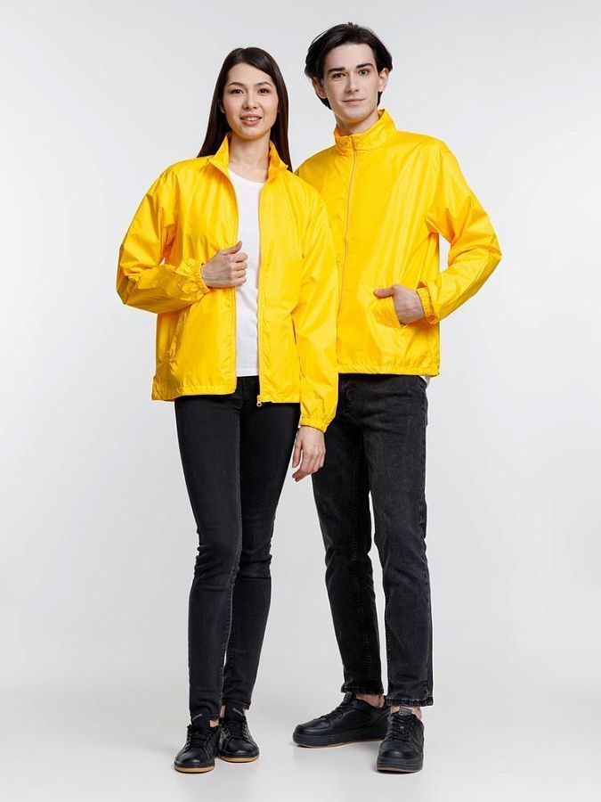 Тонкая гладкая ткань дюспо с притягательным матовым блеском почти бесшумна в использовании и пригодна для большого количества цветов печати. Качественный пошив ветровки добавляет ей презентабельности и гарантирует долгое использование, а яркий цвет привлекает внимание и не выгорает со временем.