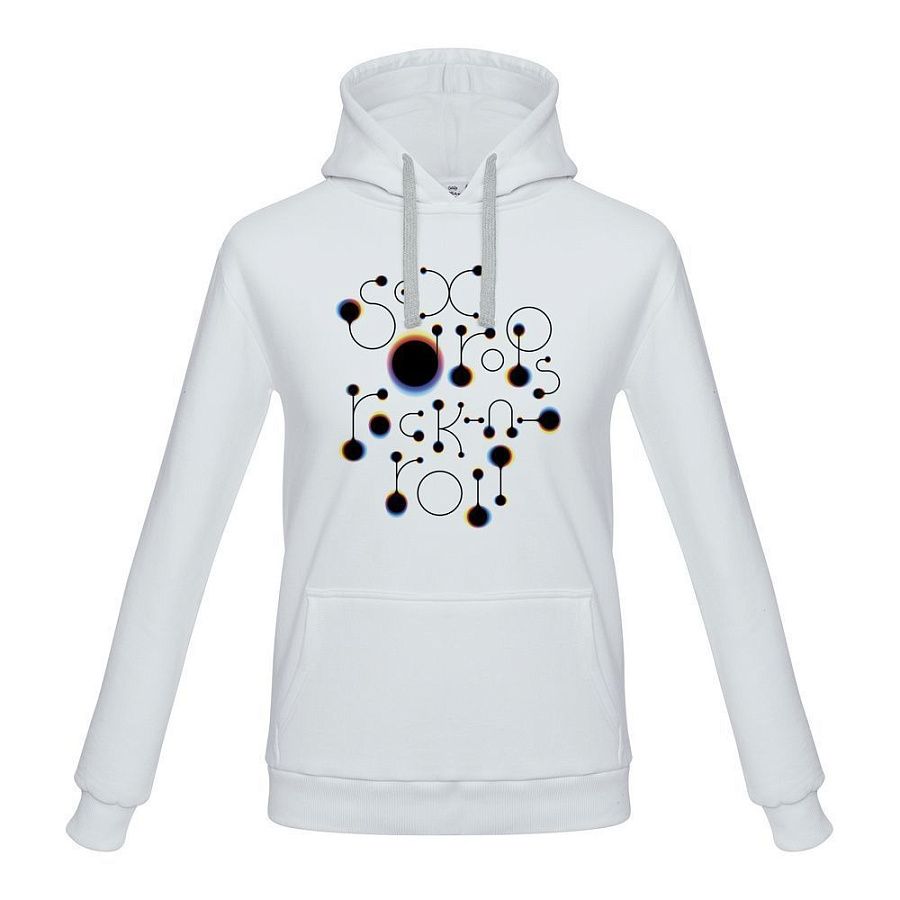 «Принтэссенция» поддерживает здоровый образ жизни: рок-н-роллить вполне можно и без запрещенных веществ! А кайф и радость жизни пусть передаются воздушно-капельным путем.Теплая толстовка с капюшоном и карманом-кенгуру.