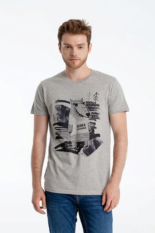 Пока человек человеку волк, для волка человеку и футболки не жалко! И пусть она не из волчьей шерсти, зато похожего цвета!Бесшовная футболка с круглым вырезом.