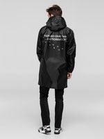 Черный плащ — только для супергероев! Классический плащ-дождевик с фразой из песни одноименного персонажа поможет не только злодеев победить, но и защитит во время дождя. Удлиненная модель на молнии, на капюшоне есть утягивающий шнур, а в манжеты вставлены резинки. Дождевик складывается в мешочек — удобно брать с собой.