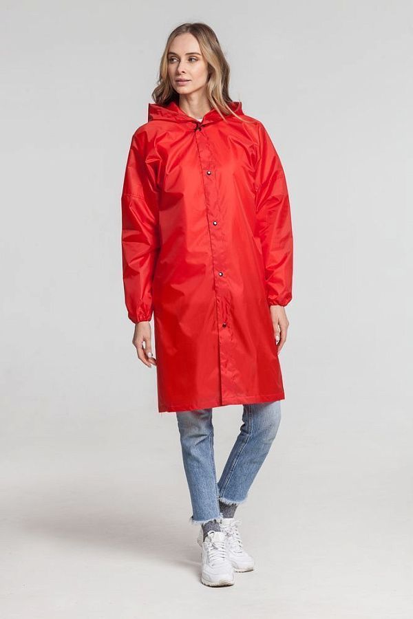 На Rainman получится нанести более яркое и четкое изображение с тонкими линиями, ведь переплетение нитей в ткани едва заметно. Фурнитура в цвет изделия удержит все внимание вокруг вашего маркетингового сообщения.Плащ-дождевик из ткани таффета на кнопках с капюшоном.