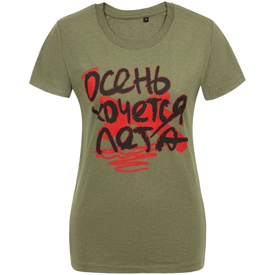 Футболка женская «Осень хочется лета», меланж хаки, артикул 70765.99