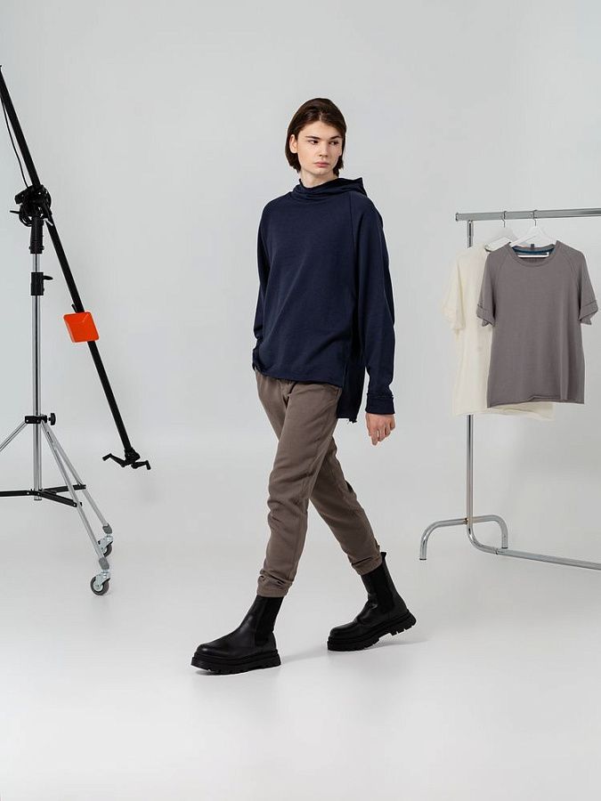 Худи унисекс свободного кроя с рукавами реглан. Внутренняя сторона без начеса.