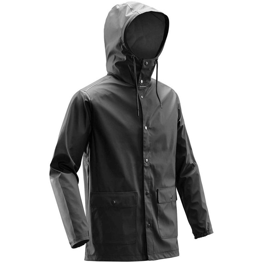 Стильный и практичный дождевик на кнопках из матового водонепроницаемого и ветрозащитного материала. Благодаря сварке ультразвуком швы абсолютно водостойкие. Карманы защищены от дождя накладными клапанами.