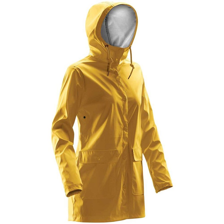 Стильный и практичный женский дождевик на кнопках из матового водонепроницаемого и ветрозащитного материала. Благодаря сварке ультразвуком швы абсолютно водостойкие. Карманы защищены от дождя накладными клапанами.