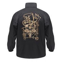 Пришло время впустить пар! Берем пример с Джонни-черепа: бронзовые и латунные оттенки, очки-гогглы, пара дюжин шестеренок и механизмов всех мастей, цепи, колбы и черный цилиндр. Все, теперь ваш образ в стиле стимпанк готов. Можно отправляться в будущее или прошлое – куда пожелаете?Ветровка на молнии с капюшоном и одним карманом с правой стороны.