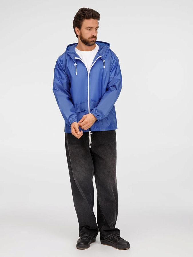 Укороченный дождевик свободного кроя из ткани таффета с влагозащитным покрытием. Складывается в мешочек — удобно брать с собой.