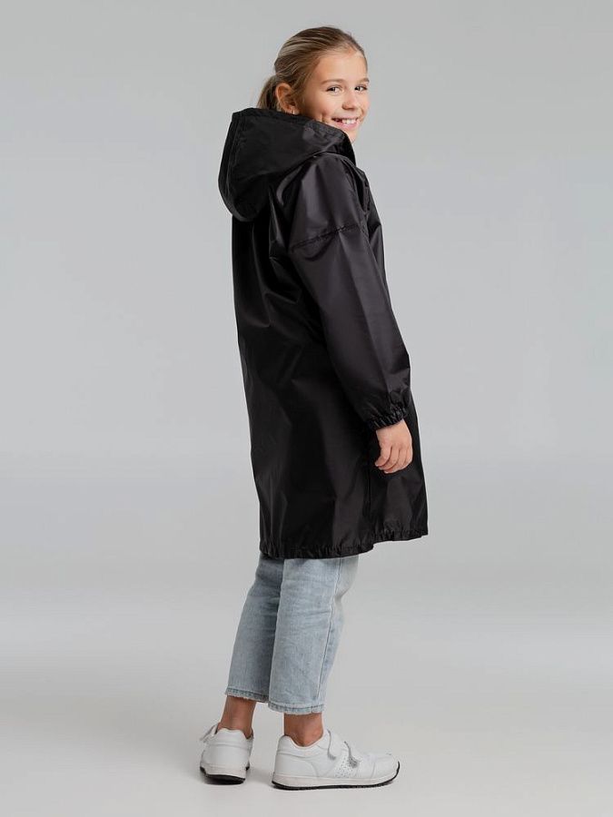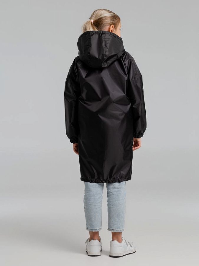 Детский дождевик на молнии из таффеты с влагозащитным покрытием. Складывается в мешочек — удобно брать с собой.