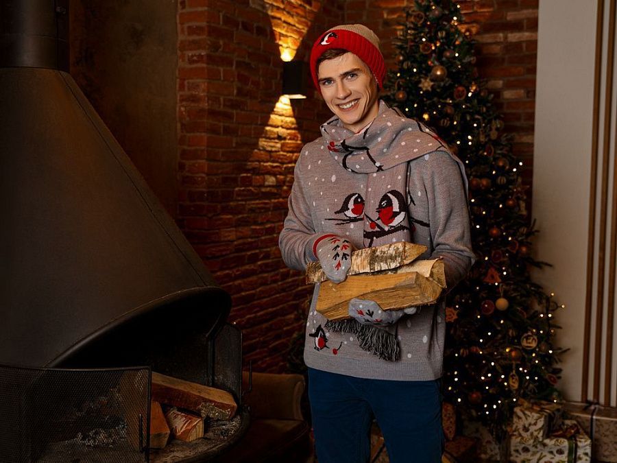 Каждый придумает свою историю, а согреться поможет коллекция Birds and Berries.Джемпер с круглым вырезом и жаккардовым рисунком.