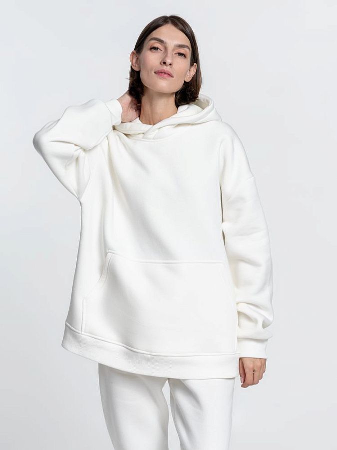 Худи унисекс со спущенным плечом и карманом-кенгуру.
