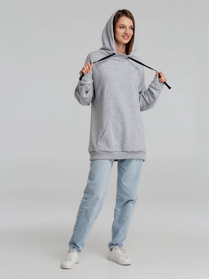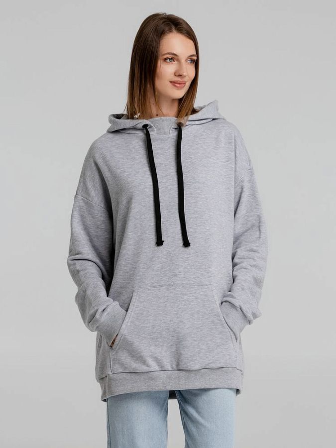 Худи унисекс со спущенным плечом и карманом-кенгуру.