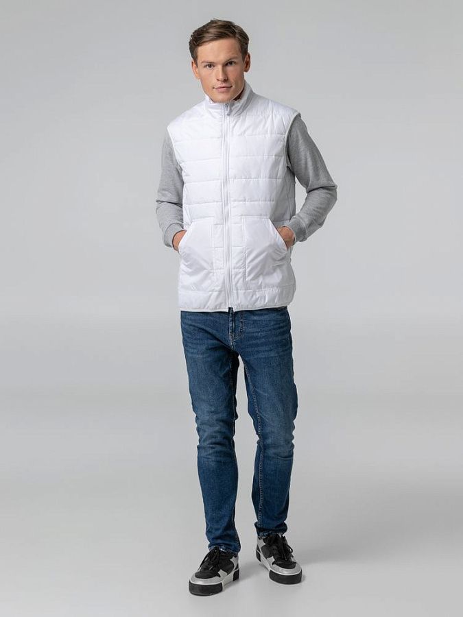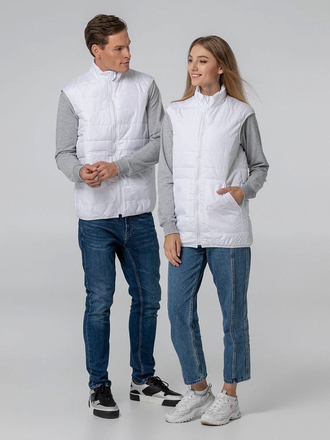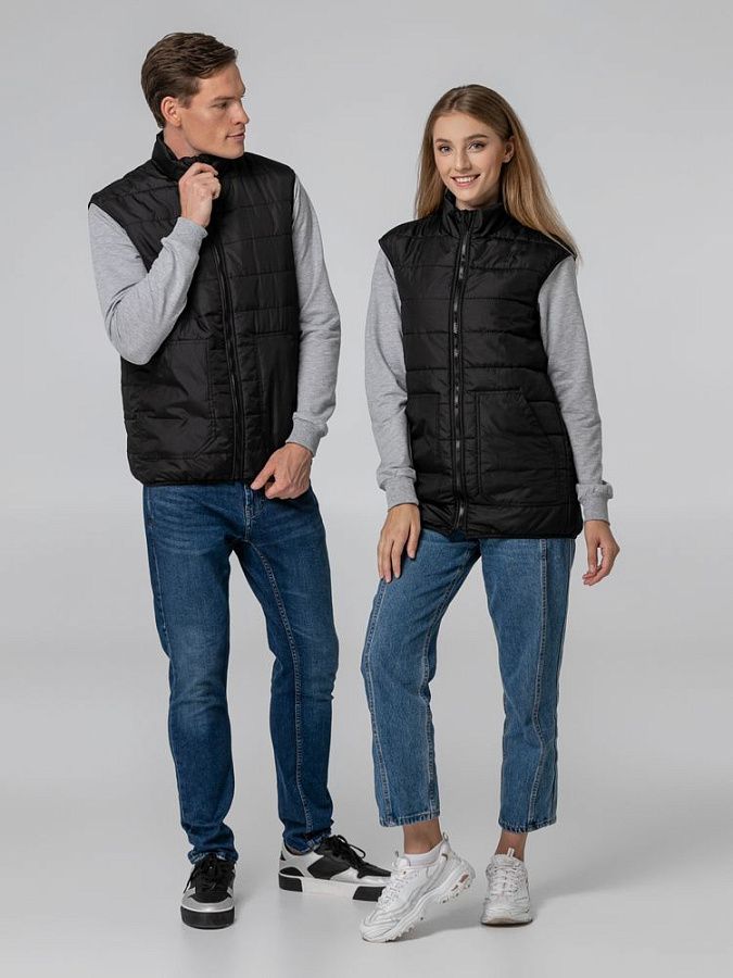 Утепленный стеганый жилет унисекс из ткани дюспо, которая считается лучшим современным материалом для изготовления курток, ветровок и плащей. Это прочный материал из полимерных волокон с защитной пропиткой, который не впитывает влагу и обеспечивает хорошую циркуляцию воздуха.