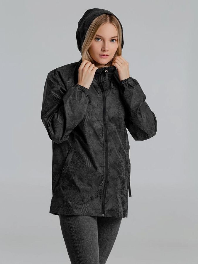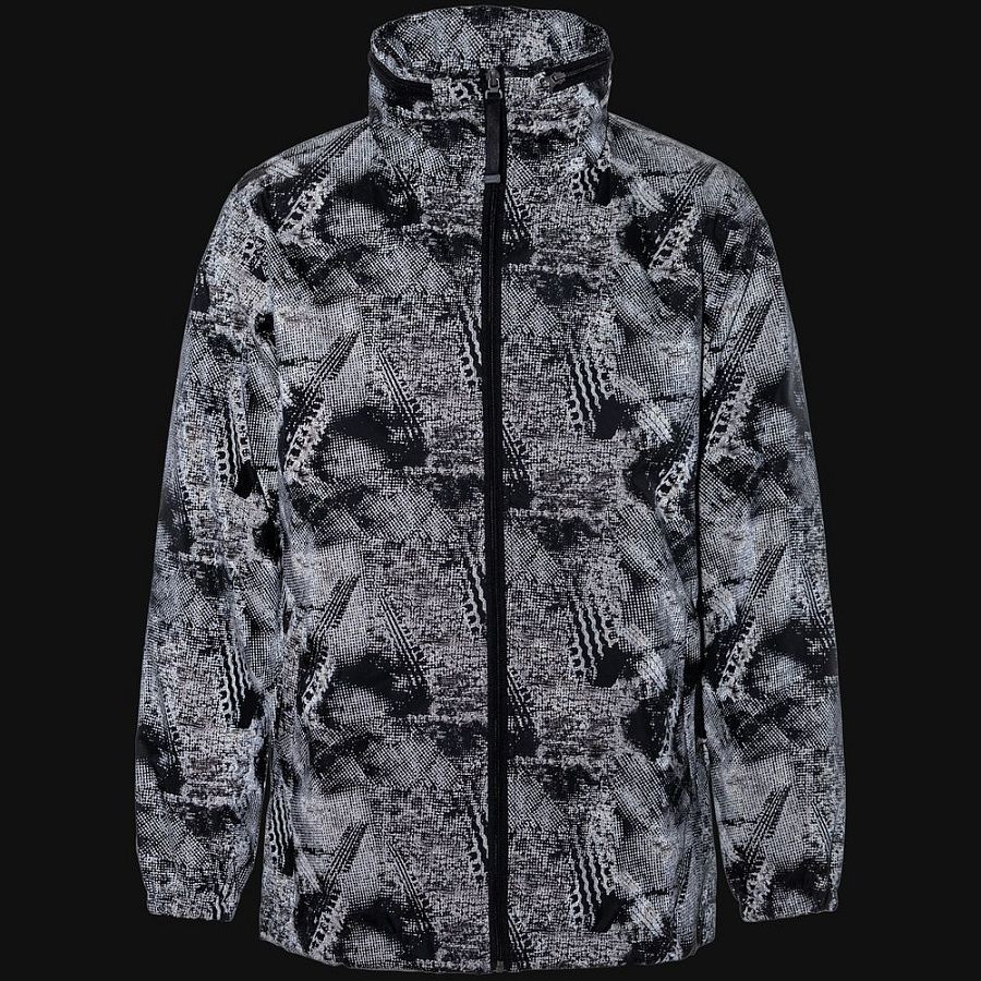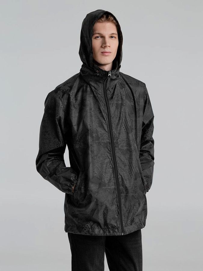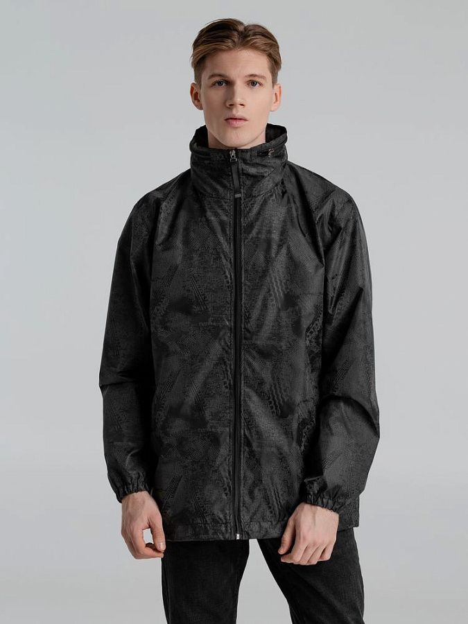 Ветровка с капюшоном из ткани с водоотталкивающей пропиткой и светоотражающим рисунком.
