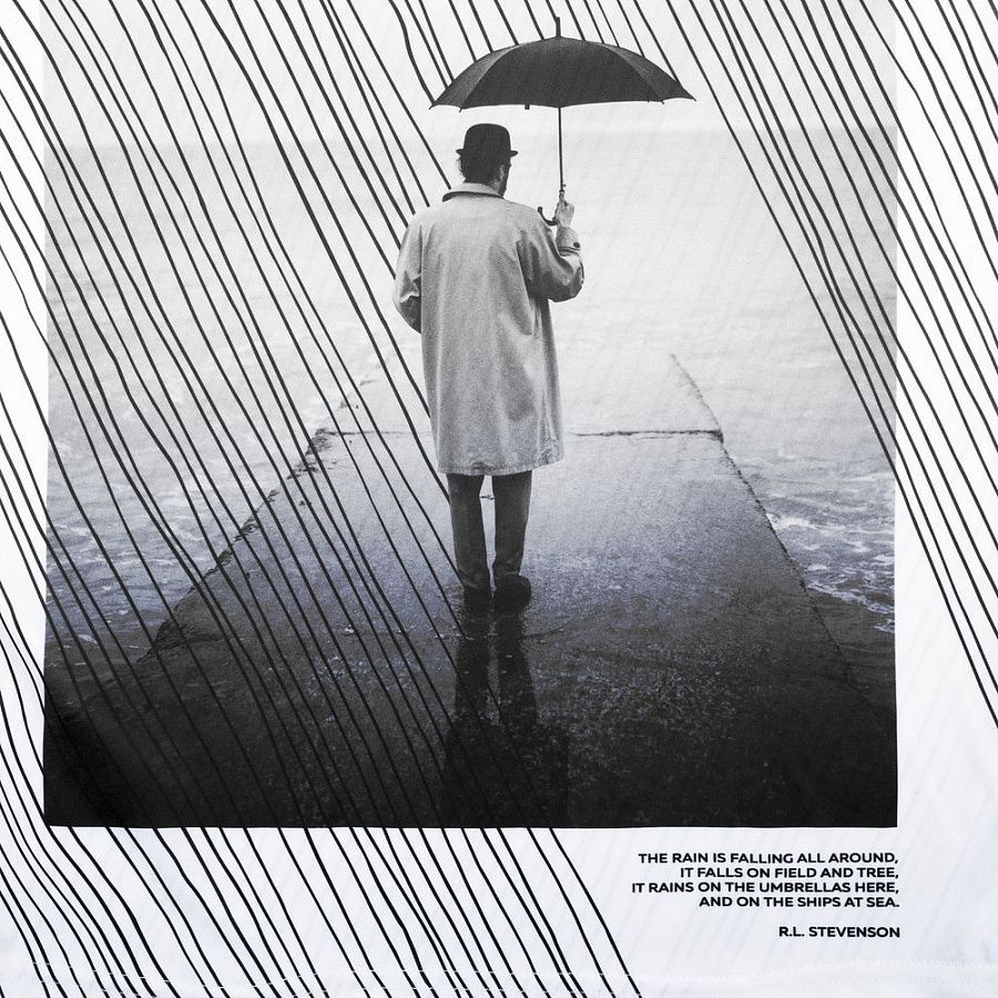 Затяжной ливень заполняет собой все пространство длинными линиями, словно строчки стихов белые страницы. Дождь — это поэзия природы. Футболка с эпиграфом.Футболка унисекс оверсайз. Окантовка горловины из основного полотна.