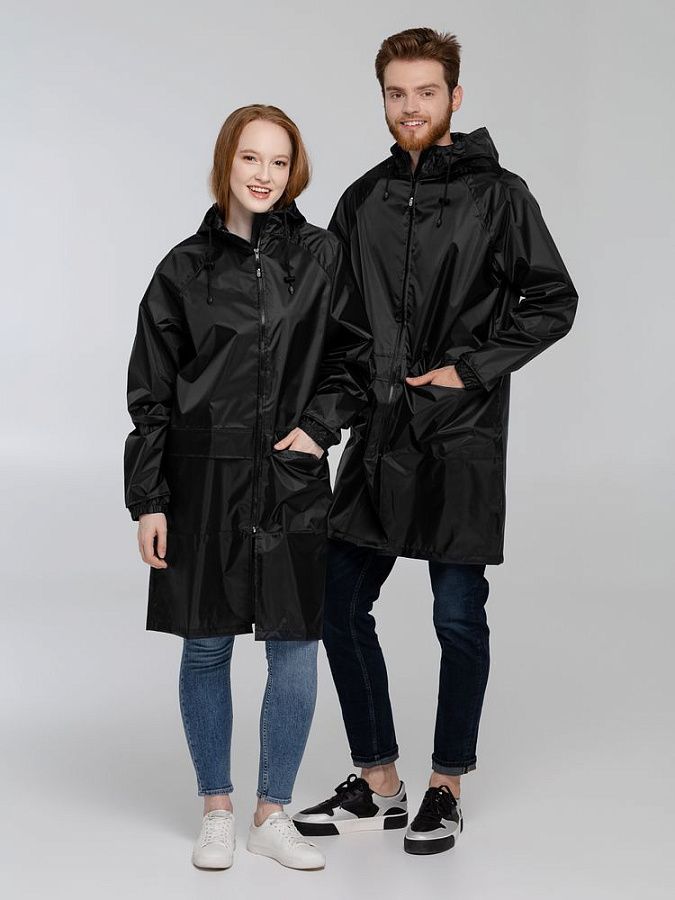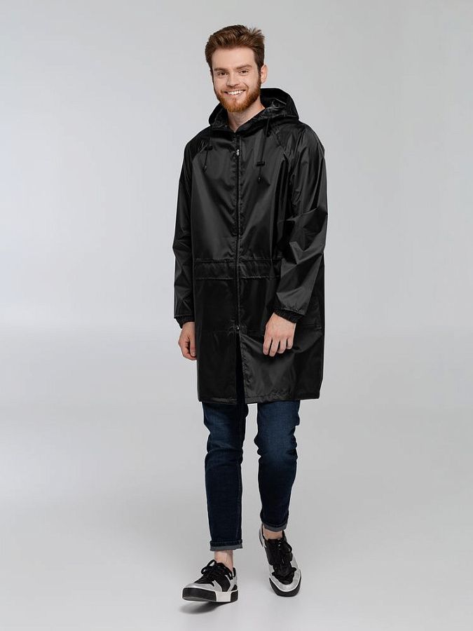 Под дождем можно не только петь, но и танцевать! Лучшее тому доказательство — популярность пятичасового шоу-балета, где танцоры неустанно пляшут под дождем, и, конечно, этот плащ-дождевик.Плащ-дождевик на молнии с капюшоном и рукавами реглан. Ветрозащитные манжеты на рукавах.