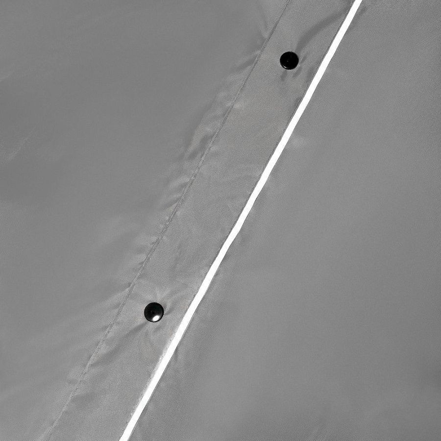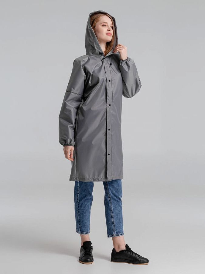 Плащ-дождевик из ткани оксфорд на кнопках с капюшоном. Световозвращающие элементы на рукавах и планке позволяют быть замеченным в темное время суток.