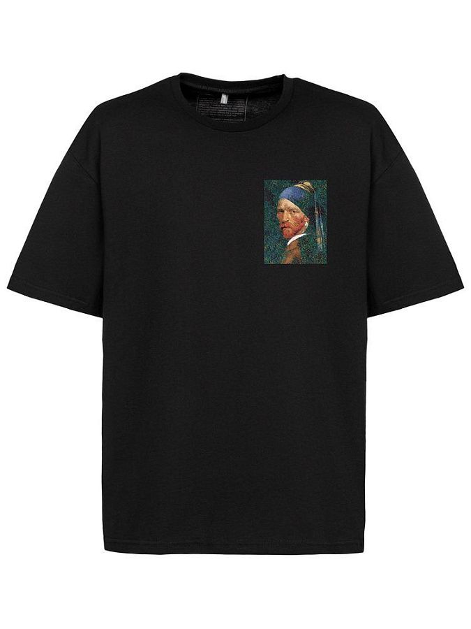 Принт с информацией о бренде и инструкцией по уходу за изделием на изнаночной стороне футболки.