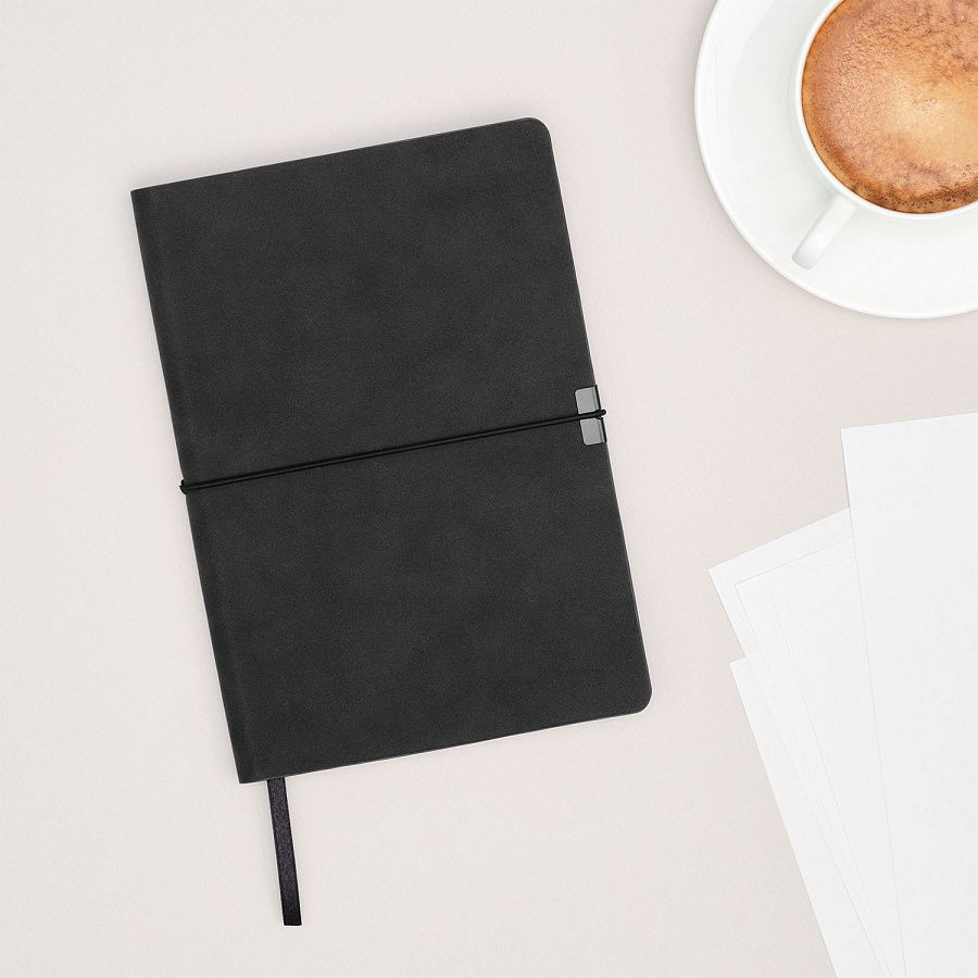Ежедневник Alfa Techno Soft A5, черный, недатированный, в твердой обложке с металлическим элементом, артикул 553351.0319 new