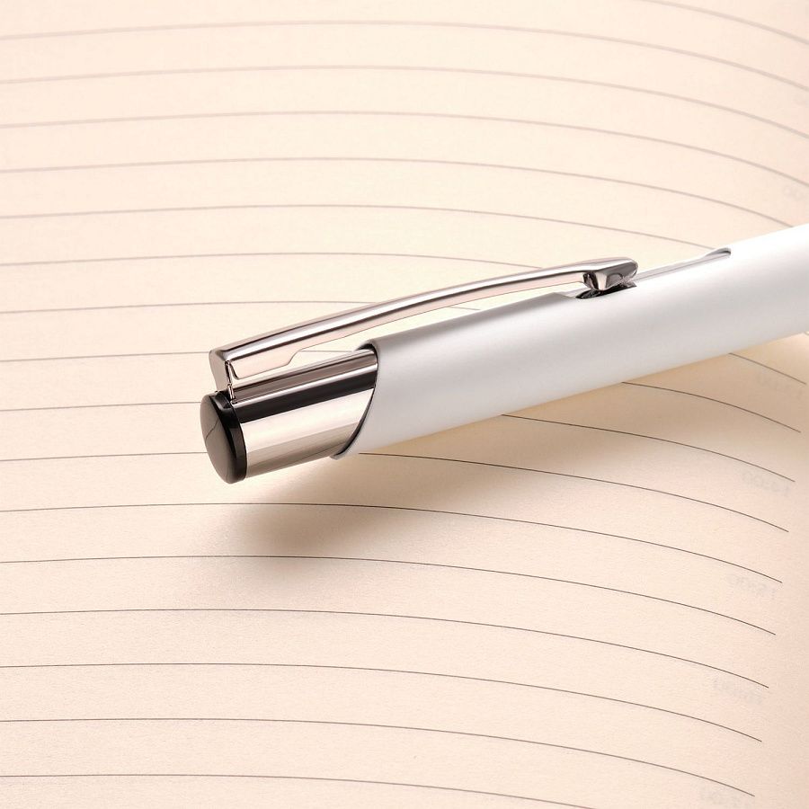 Классическая ручка в шелковистом покрытии soft touch станет прекрасным инструментом для письма. Хромированные детали – два декоративных кольца и функциональный надежный клип.
