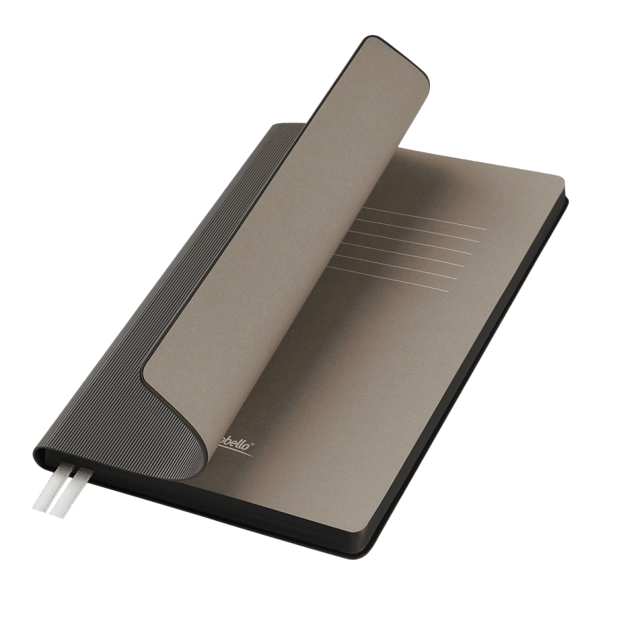 Недатированный ежедневник в стильном лаконичном сером цветовом решении. Цветовая палитра составлена из природных приглушенных тонов. Гибкая матовая обложка со скругленными уголками выполнена из искусственной кожи, имитирующей покрытие в стиле Hi-Tech. Переплетный материал с вертикальным рифлением, бархатистый, со слегка прорезиненным эффектом. За счет интересной рельефной фактуры прослеживается игра цвета при перемене освещения. Цвет – темно-серый, плотный, однородный. Создает органичный тандем с матовыми форзацем и нахзацем серого цвета. Срез матовый, в тон обложки. Страницы со скругленными уголками приятного глазу теплого светло-кремового цвета. Выполнены из гладкого шелковистого офсета. Ежедневник дополнен двойным атласным ляссе из лент серого цвета, имеющих глянцевый отлив. Упаковка: нет (без упаковки, без стикеров).