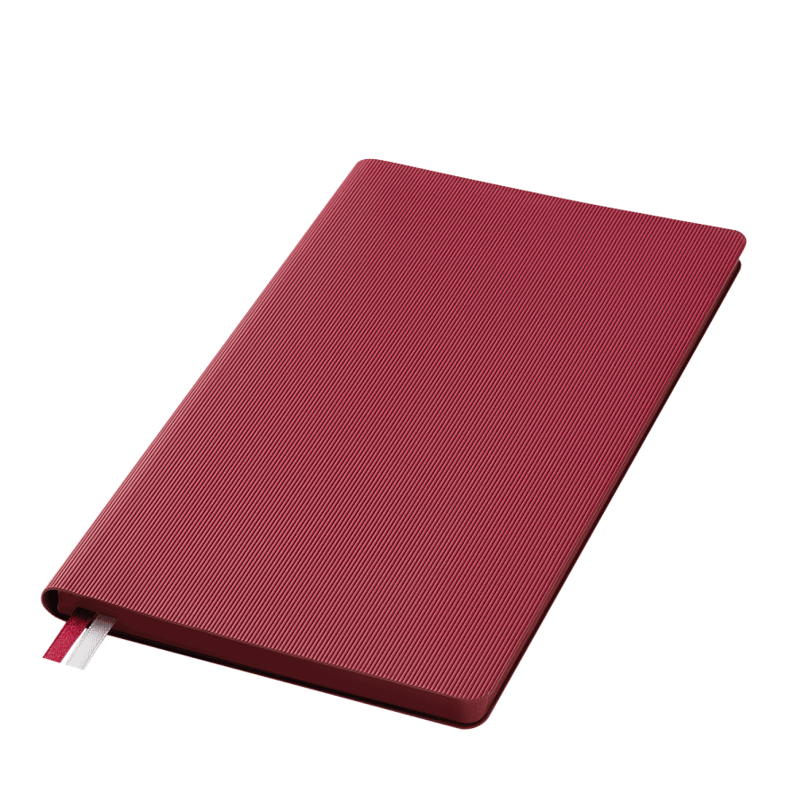 Глубокий, насыщенный цвет обложки гармонично сочетается с матовыми серыми форзацем и нахзацем. Скругленные уголки страниц и матовый срез блока, идеально подобранный в тон обложке, добавляют изысканности.