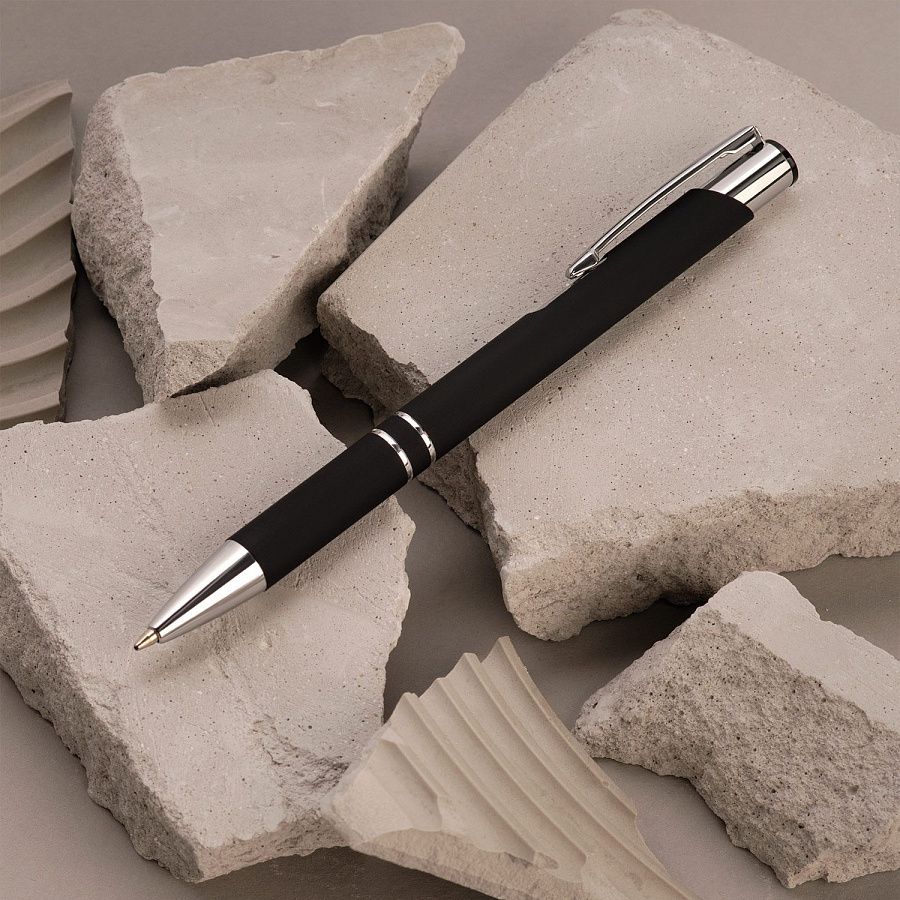 Классическая ручка в шелковистом покрытии soft touch станет прекрасным инструментом для письма. Хромированные детали – два декоративных кольца и функциональный надежный клип.