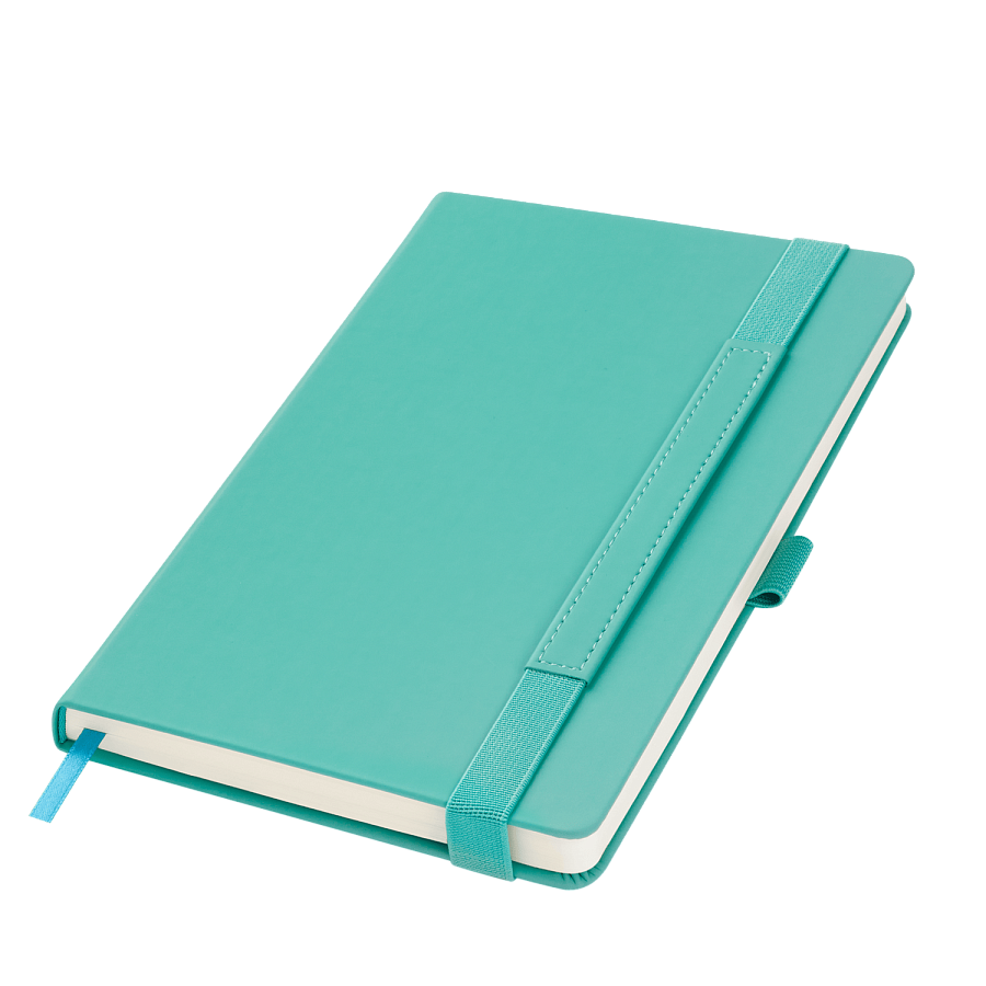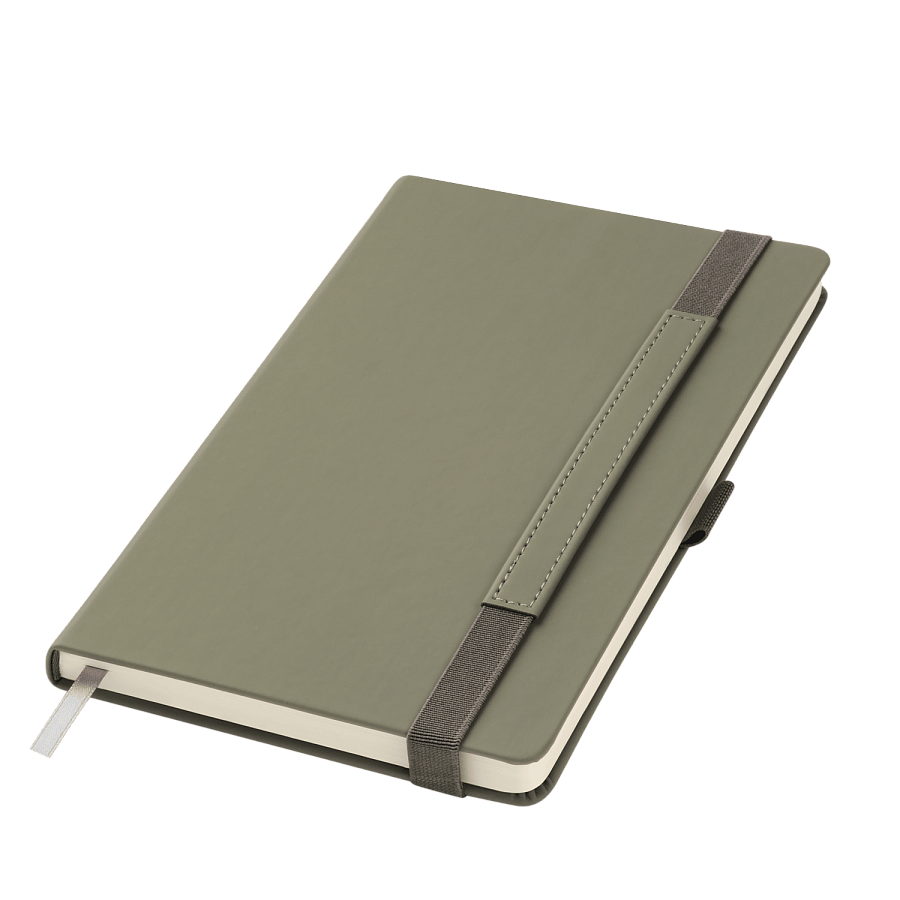 Вертикальная резинка-фиксатор с вставкой из ПУ-материала обложки и петелька под ручку, в цвет обложки