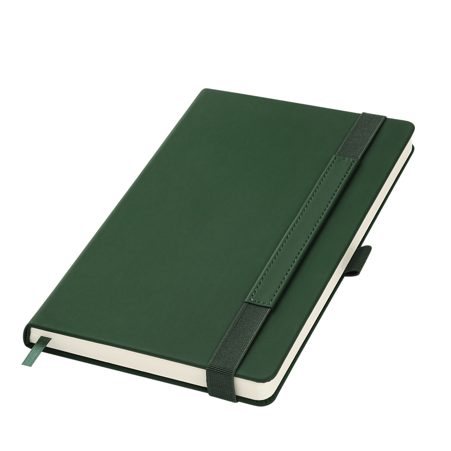 Вертикальная резинка-фиксатор с вставкой из ПУ-материала обложки и петелька под ручку, в цвет обложки