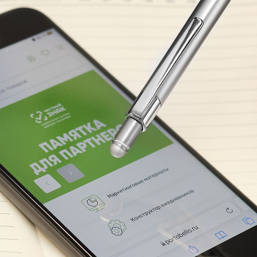 Тонкая, идеально сбалансированная ручка приятно лежит в руке. Оснащена стилусом для работы с сенсорными экранами.