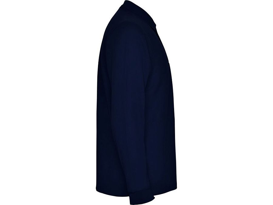Поло с длинным рукавом. Воротник и манжеты из риба 1х1 с эластаном. Дополнительная укрепляющая строчка по горловине. Планка на 3 пуговицы и разрезы в боковых швах.